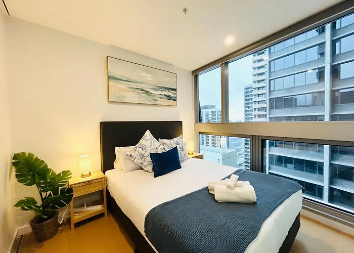 Das Apartment Ferienwohnung Kula Docklands befindet sich im zentralen Stadtteil von Melbourne City. Das Zentrum von Melbourne City können Sie nach 15 Minuten Fußweg erreichen. Coffee Gauge und Vintam's Bakery Cafe befinden sich in 200 Metern Entfernung.